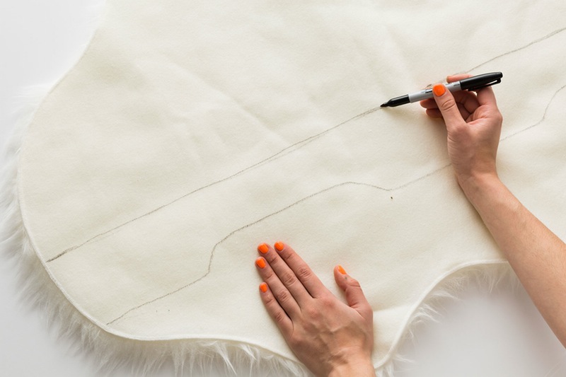 - Grab your second fur pelt and cut off the edges to create a 20 x 30-inch rectangle.
